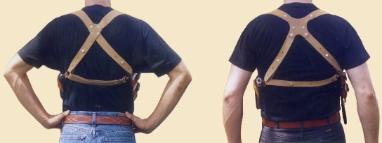Many people of slighter build find the 'Y'-harness (on left) to be more comfortable. People of average or larger size usually prefer the monarch style (right).